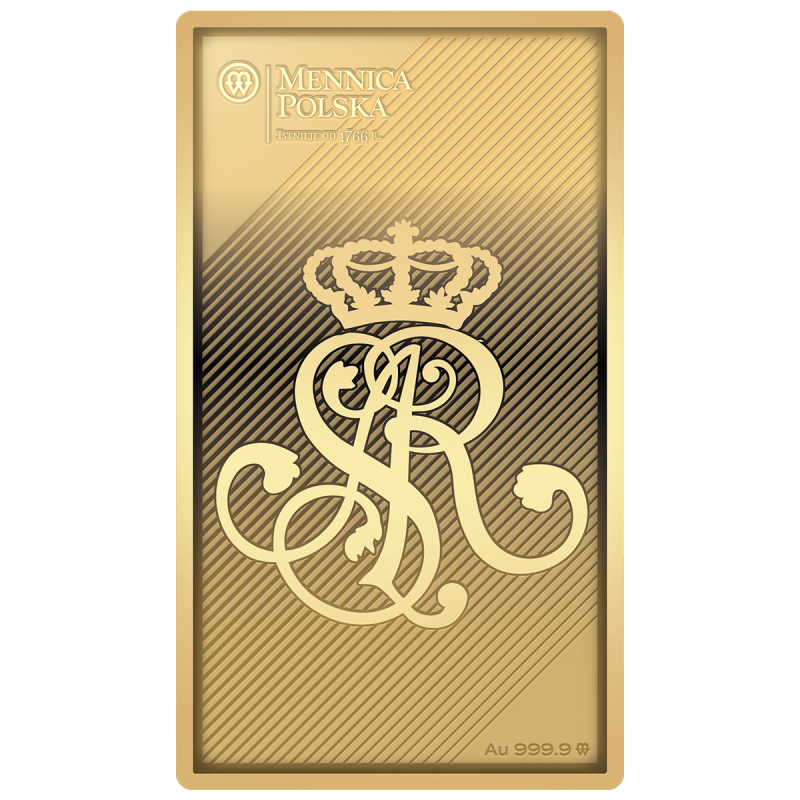Kolekcjonerska sztabka okolicznościowa wybita w Mennicy Polskiej w złocie najwyższej próby 999,9 i masie 1/10 uncji.